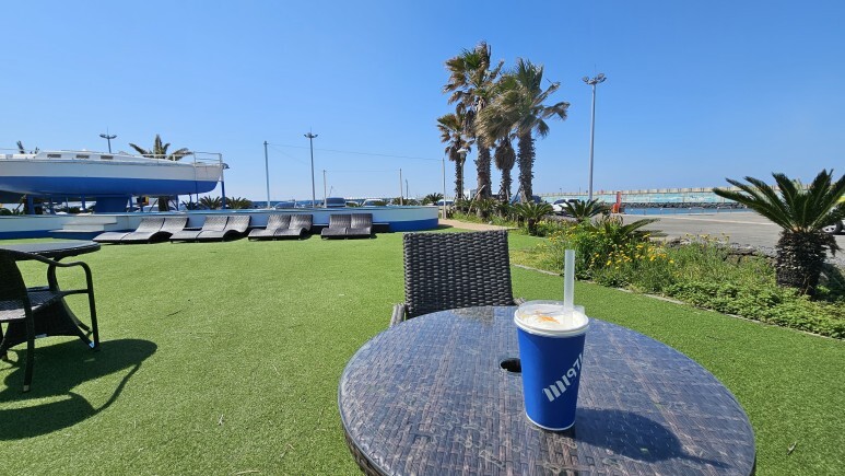 m1971 엠브릿지 카페에서 음료를 마시면 배시간을 기다렸어요~