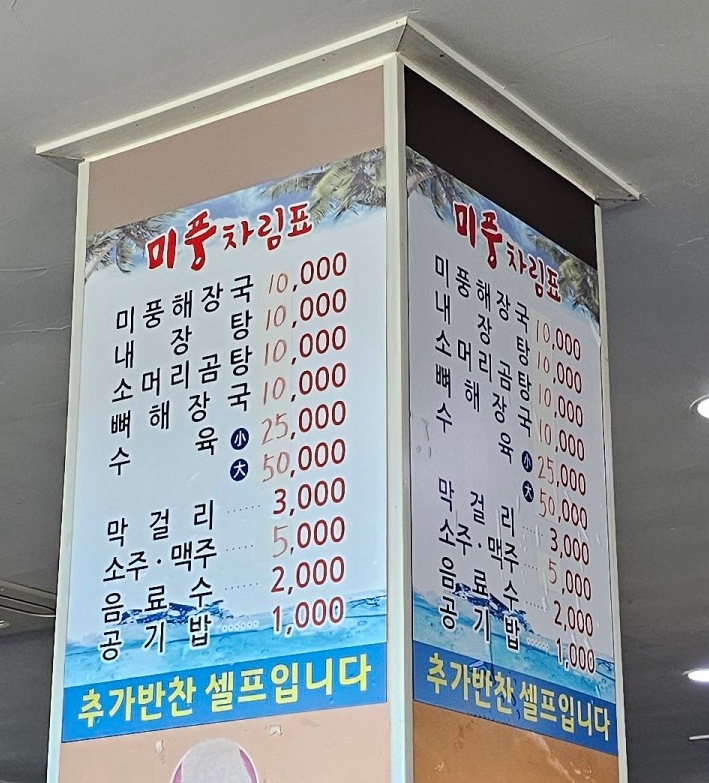 미풍해장국 모슬포점 메뉴판 및 상차림