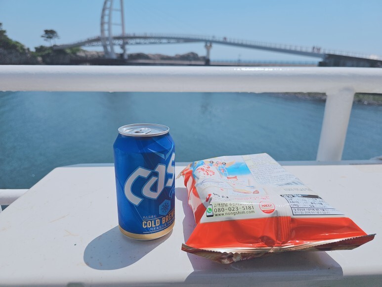 요러케 스벅에서 음료와 샌드위치를 포장해와서 바다를 바라보며