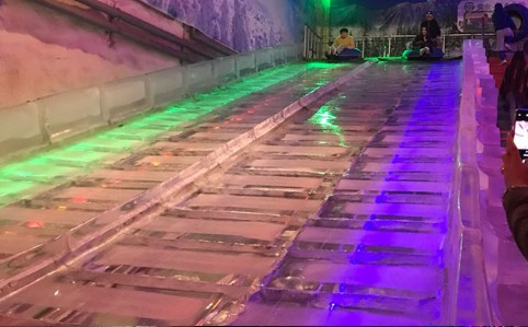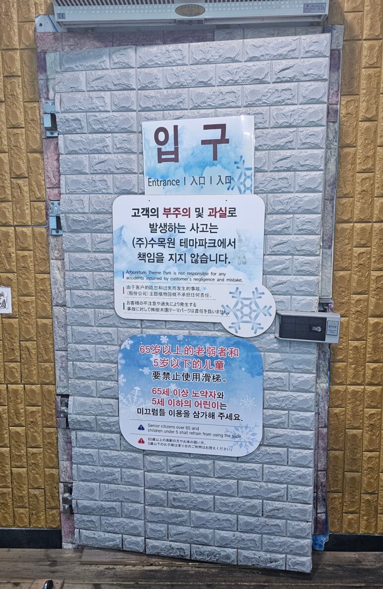 얼음미끄럼틀은 튜브를 가지고 올라가 타고 내려오는 방식인데, 생각보다 빠르고 재밌었어요