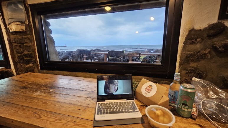 전면으로 난 통창으로 제주 바다를 볼 수도 있어서 제일 마음에 드는 공간입니다~