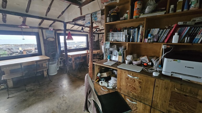 사진에 보이는 곳은 체크인 및 주방, 테이블 그리고 만화를 볼 수 있는 만화방이 있답니다.