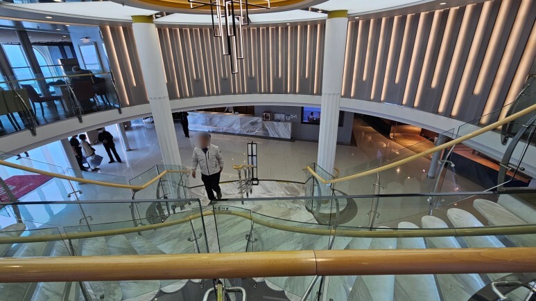 퀸 제누비아호는 로비에 있는 메인 계단을 통해 윗층과 아랫층을 다닐 수 있는데요!