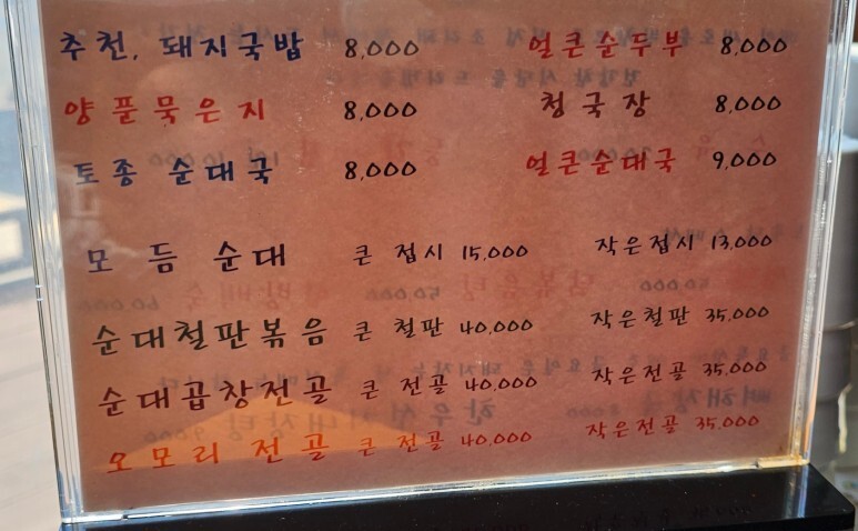 주 메뉴는 돼지국밥, 순대국 종류 인데, 식사류 외에도 전골, 볶음 등의 안주류도 있습니다~