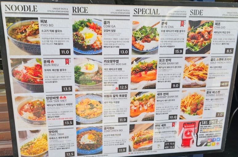 < 베트남 음식점 르번미 메뉴판 >