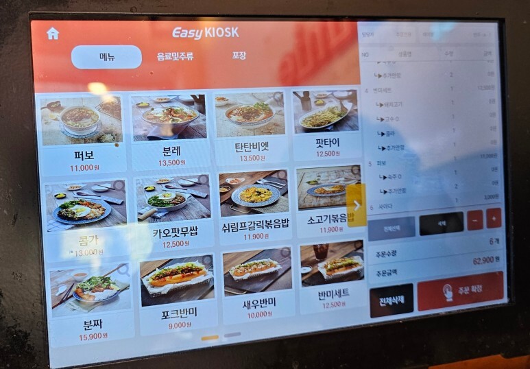 저희도 자리마다 설치되어 있는 키오스크를 통해 주문을..