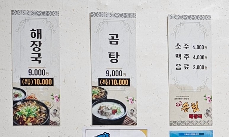 < 삼척 송림해장국 메뉴 >