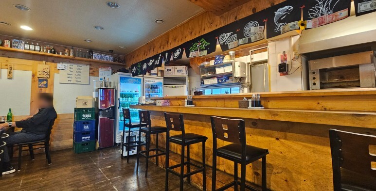 가게 매장은 4인테이블, 2인테이블들과 길게 뻗은 바테이블로 되어 있는데요~