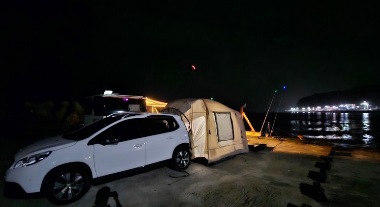 저는 바다도 보고 낚시도 같이 할거니깐 바다를 바라보는 방향으로 차박 텐트를 설치!!