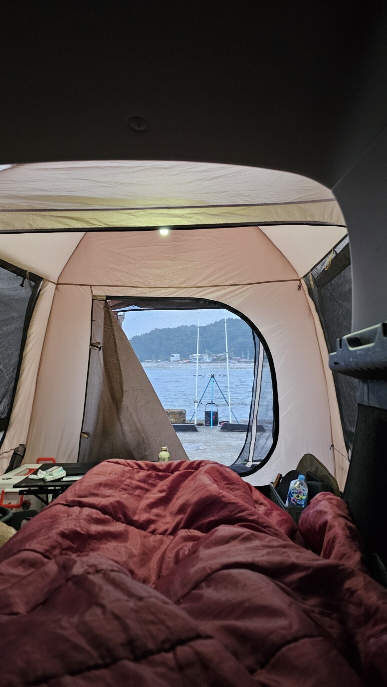 저는 바다도 보고 낚시도 같이 할거니깐 바다를 바라보는 방향으로 차박 텐트를 설치!!