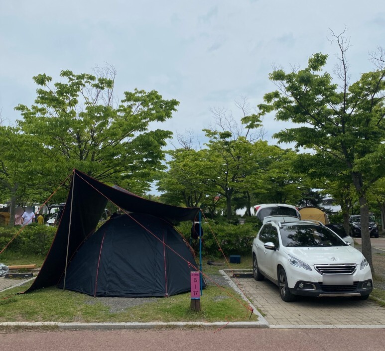 여기 자리는 취사장 바로 옆 자리보단 불편하겠지만 취사장이 길 건너편에 있어서 이용하기 편해요.