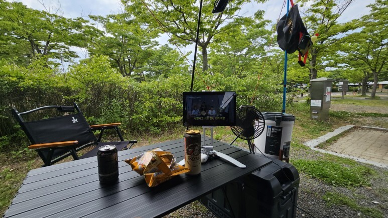 땀 흘리며 열심히 세팅을 끝내고 맞이하는 캔맥주 타임!!