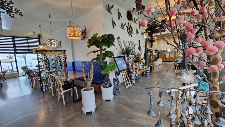 야외 테라스도 잘 꾸며져 있어서 날이 좋을때는 야외테라스에서도 오션뷰를 보며 커피 한잔 가능합니다~