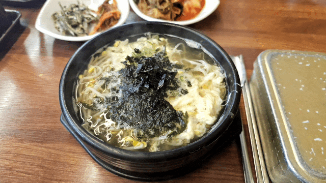콩나물이 한가득 들어있고 김 고명이 올라갑니다~