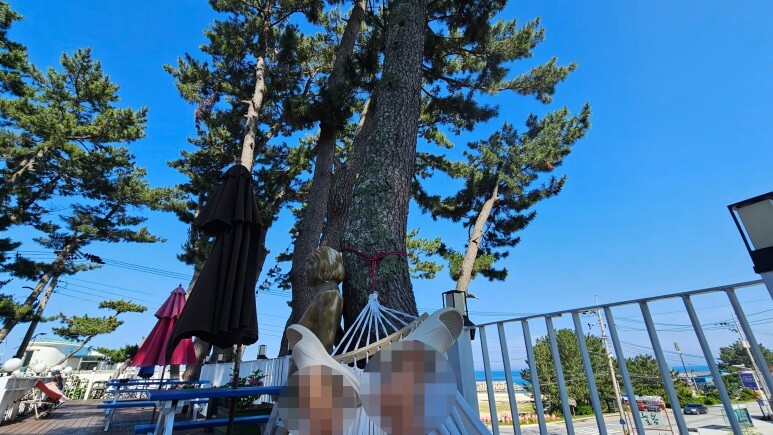 1층이다 보니 바다가 아주 잘 보이지는 않지만 바다도 보이고 멋진 소나무도 보이고 좋았어요~!!