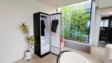 거실에는 스타일러와 TV, 쇼파, 화장대(고급 헤어 드라이기도 있어요~챙기실 필요 X)가 있는데요!