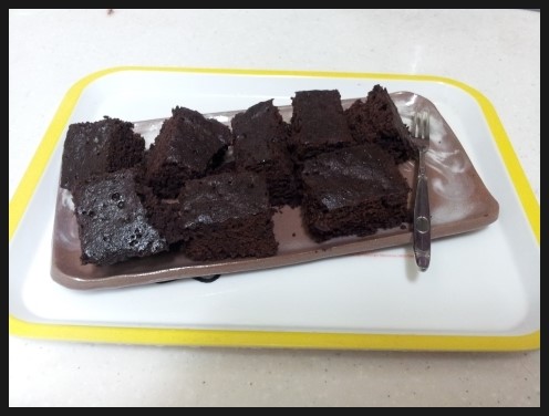 완성된 브라우니를 먹기좋은 크기로 잘라내고 그릇에 담았습니다~