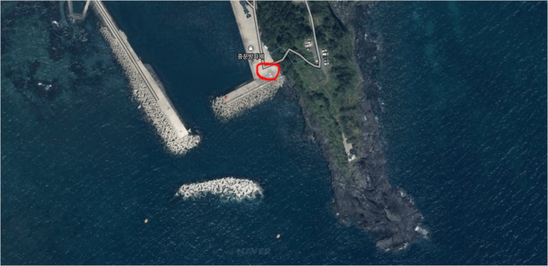 사진에서 동그라미 친 곳에 주차를 하고 방파제 구경함
